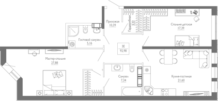 Площадь от 92.98 м2
